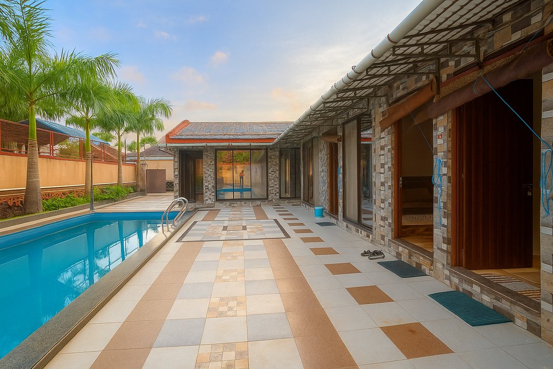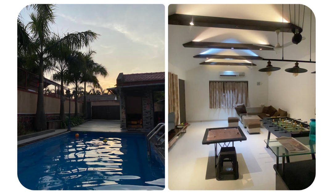 Gokul Villa is a private 3 BHK pool villa located in the scenic Villa Montana community near Neral. Designed for families and groups, it features spacious AC bedrooms with en-suite bathrooms, a private outdoor pool, Smart TV, foosball, WiFi, and a cozy living area. Guests can enjoy a peaceful hilltop atmosphere, quick access to nature trails, and a secure gated environment. Perfect for weekend getaways, celebrations, or a relaxed retreat just a short drive from Mumbai.
